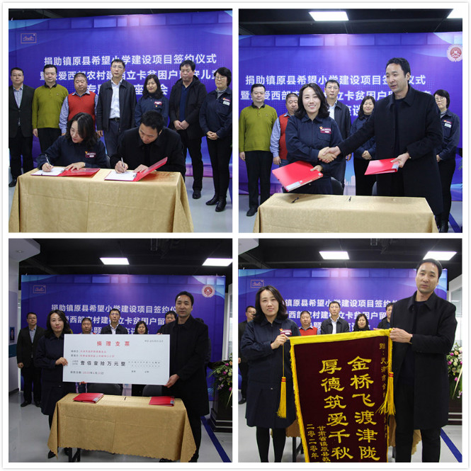 在天津市工商聯(lián)領(lǐng)導(dǎo)、中華工商時報天津記者站站長及金橋慈善基金會理事的見證下,基金會秘書長李紅梅代表金橋慈善基金會與甘肅省鎮(zhèn)原縣教育局主任吳登攀簽訂了捐贈協(xié)議。該筆捐贈資金將用于鎮(zhèn)原縣希望小學(xué)的建設(shè)項目。