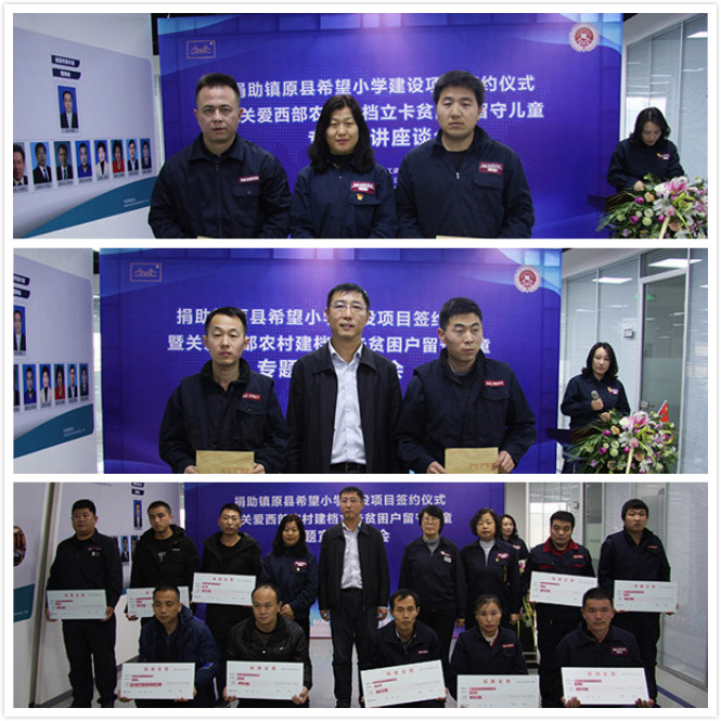 座談會上,市工商聯(lián)領(lǐng)導(dǎo)及集團(tuán)各位領(lǐng)導(dǎo)為留守兒童家長發(fā)放書包、筆袋、圖書等學(xué)習(xí)用品和幫扶金。